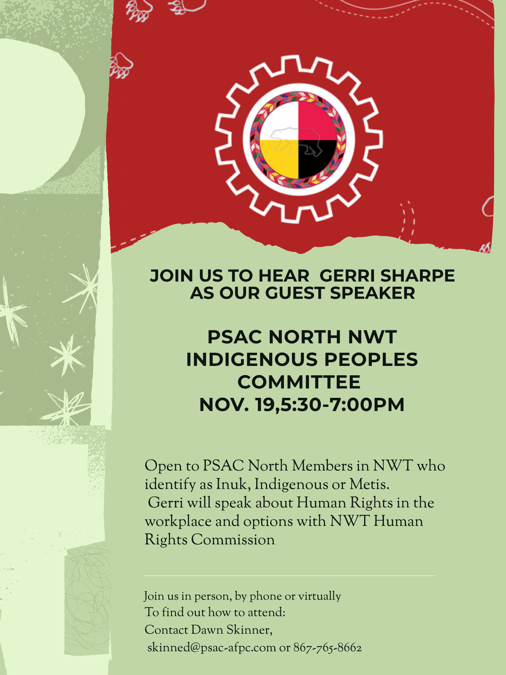 The NWT Indigenous Peoples Committee is open to All PSAC Indigenous Members in the NWT who identify as First Nation, Metis and Inuit and who are members in good standing.